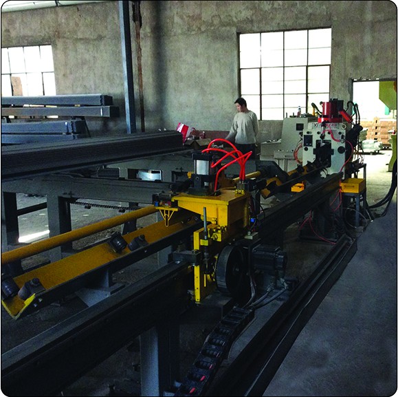 本生產(chǎn)線適用于電力、通訊、金具、立體車庫、電梯制造、空調(diào)制造等領(lǐng)域規(guī)格較小的角鋼型材的雙肢邊同時(shí)沖孔和自動(dòng)定長(zhǎng)切斷作業(yè),可通過更換模具來實(shí)現(xiàn)鉚釘孔、長(zhǎng)圓孔、異型孔的一次性制孔成型。